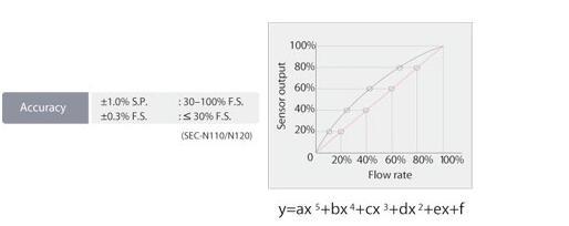 ■高精度(設(shè)定點為基準(zhǔn))MFC的線性度將由近似多項式曲線進行補償。這幫助實現(xiàn)了對所有流量控制范圍的高精度控制。為了實際氣體流量的準(zhǔn)確性進一步提高,各種工藝氣體的校準(zhǔn)數(shù)據(jù)將按照HORIBA STEC標(biāo)準(zhǔn)的氣體測量系統(tǒng)進行校驗。